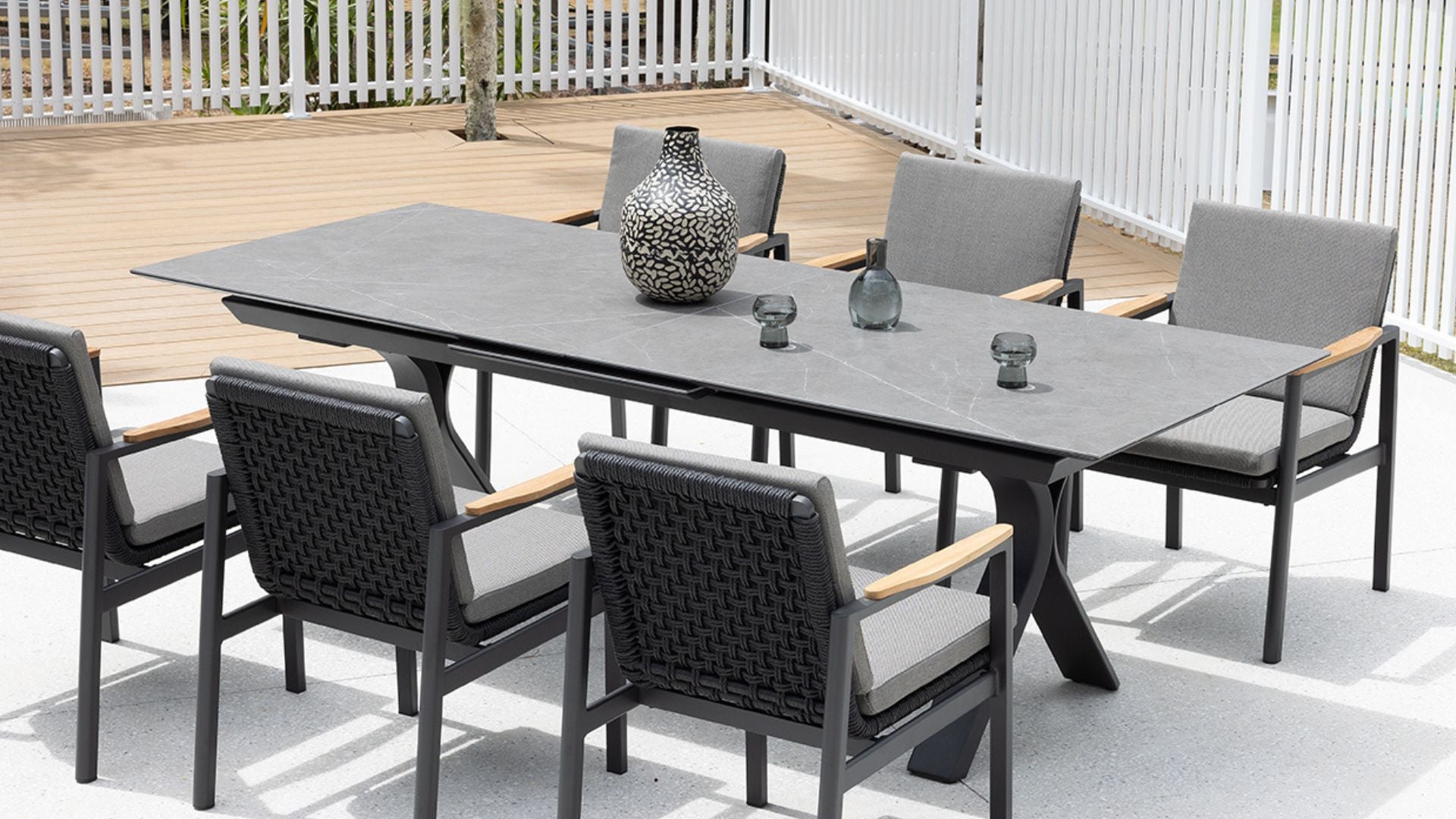 Crafted with a sintered stone tabletop, the Carson Extension Table combines aesthetic appeal with exceptional durability. Sintered stone is renowned for its resistance to scratches, stains, and UV rays, ensuring the table maintains its elegant appearance even under harsh outdoor conditions. Its non-porous surface makes cleaning effortless, requiring only a simple wipe with a damp cloth. This combination of style and resilience makes the Carson Extension Table a practical and sophisticated choice for enhancing your outdoor living space.