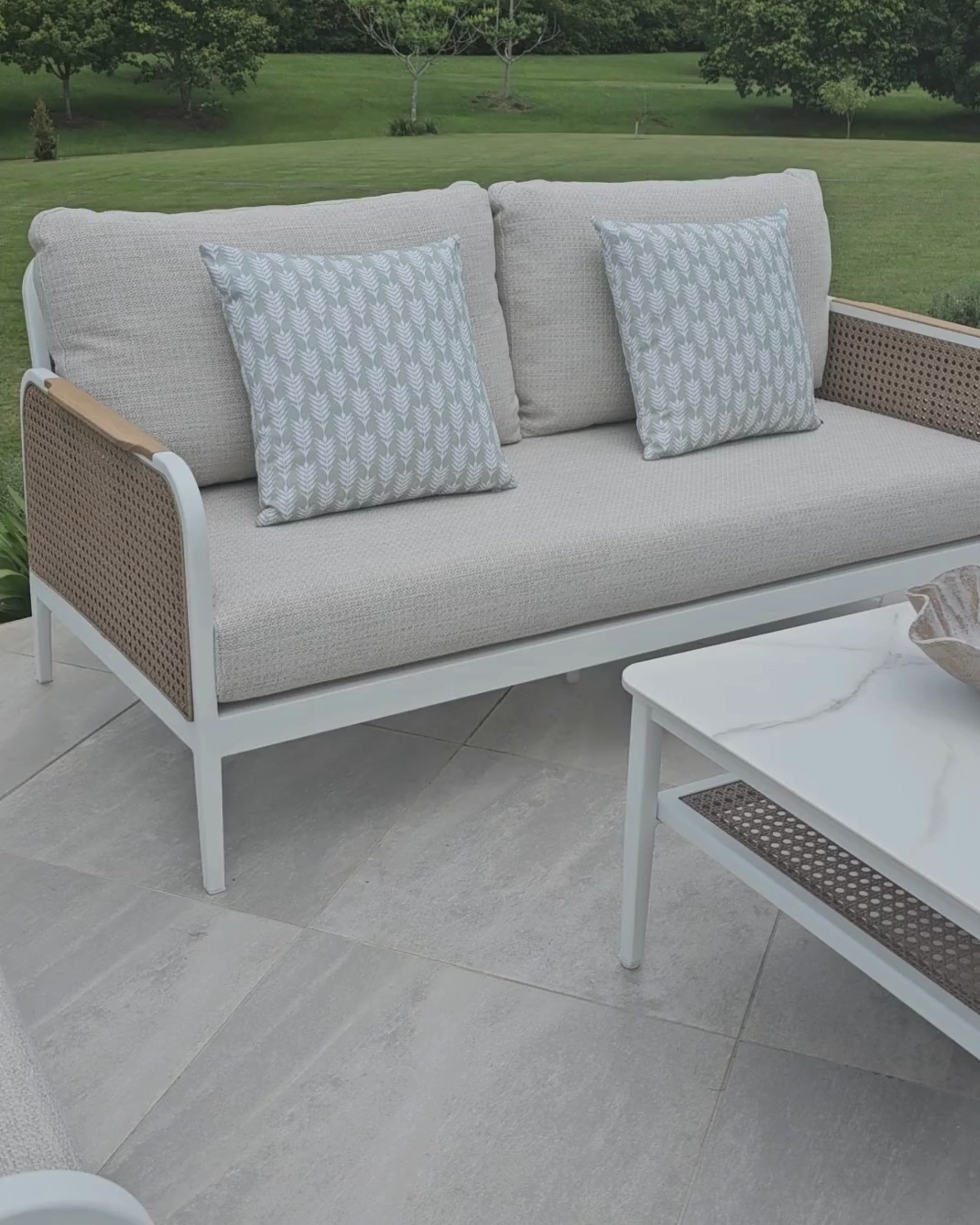 The Napa Lounge Setting features a design inspired by mid-century rattan furniture. Its graceful curves and detailed weaving capture the classic allure of that era, while being made from outdoor-friendly materials like sunproof olefin and PE wicker. Designed for both durability and comfort, this set seamlessly blends timeless elegance with lasting resilience, making it an ideal choice for your patio or garden.